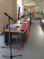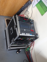 Sound mixer and feedback destroyer set up for the Foden society AGM in Sandbach.